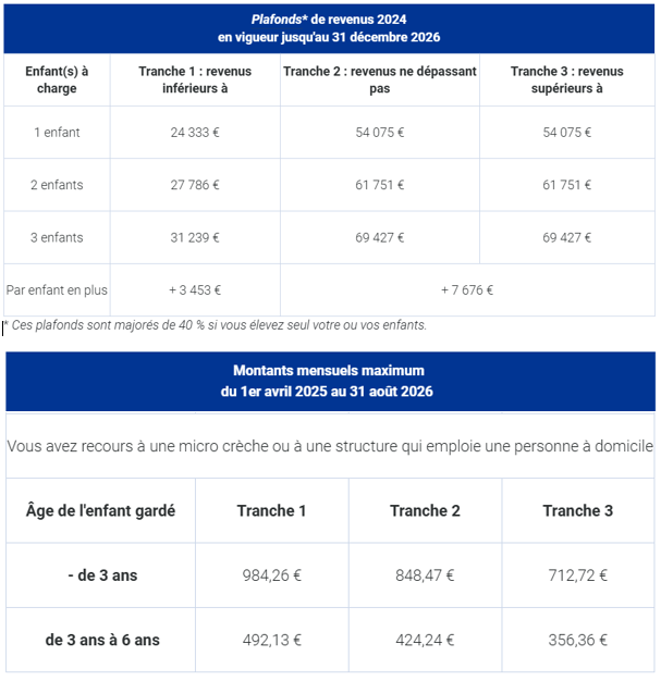 💡 Le montant dépend de vos revenus, du nombre d’enfants et de leur âge.
